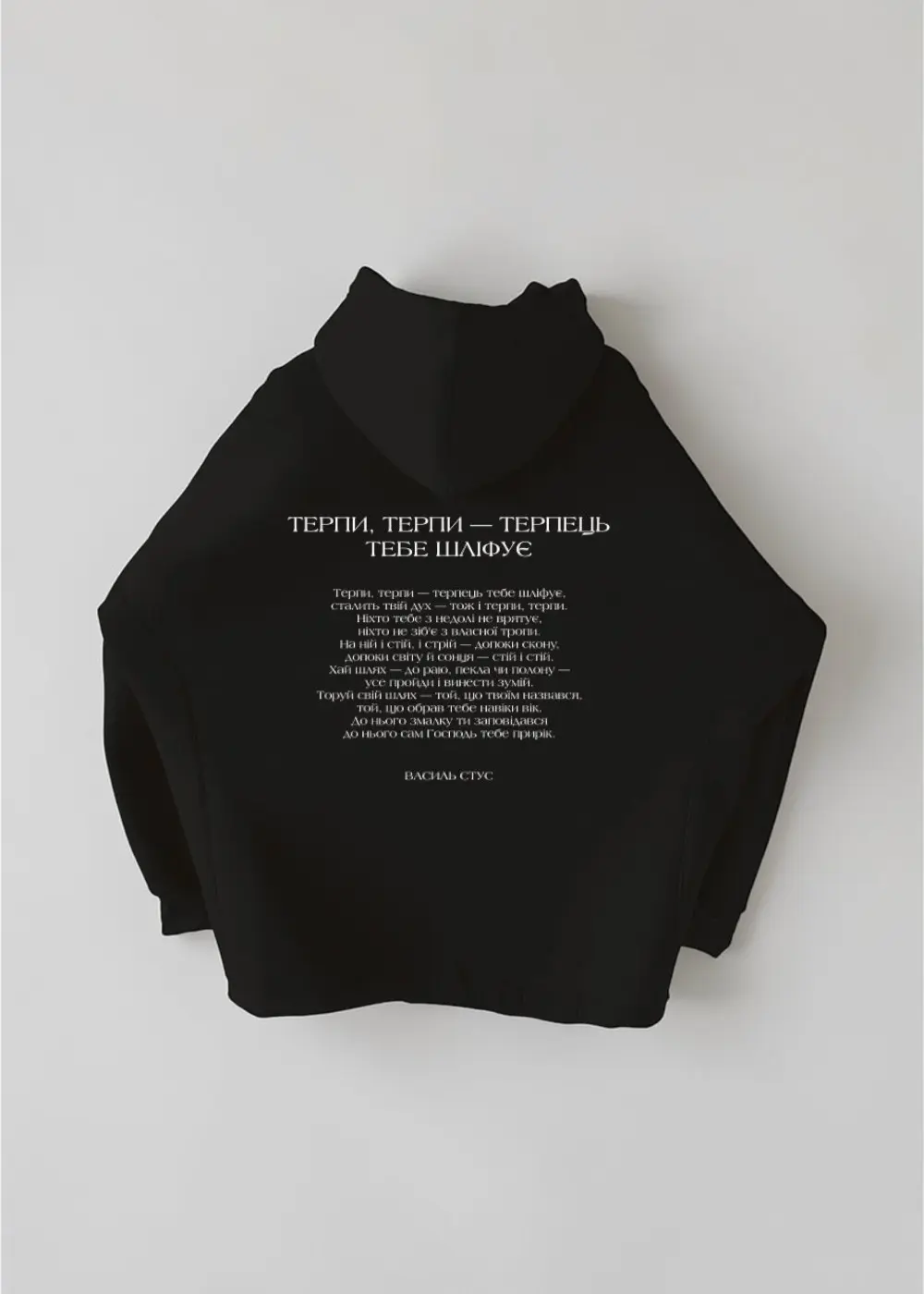Худі оверсайз РЯДКИ НА ТІЛІ Стус Терпи, терпи — терпець тебе шліфує